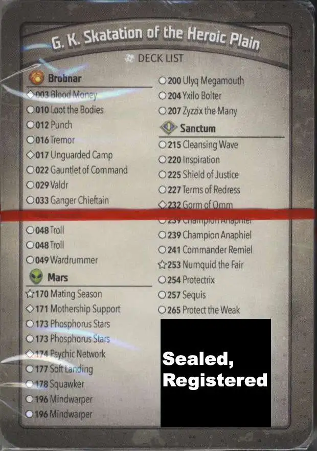 This is an unplayed, registered KeyForge deck. The cards are mint and unplayed, in the original cellophane packaging. The QR code HAS been used with the official KeyForge app. You can still add this deck to your collection in the app, but you will not receive an Aembershard.