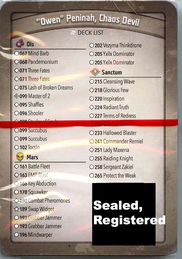 This is an unplayed, registered KeyForge deck. The cards are mint and unplayed, in the original cellophane packaging. The QR code HAS been used with the official KeyForge app. You can still add this deck to your collection in the app, but you will not receive an Aembershard.